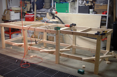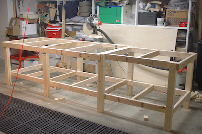 Welcome to the beginning, although as I write this, it is near the end. The first eight log files I created were assembled without any text. When I switched to the format in log number nine, I intended to redo these first eight in the same format. I am getting around to it now, three years later. Redoing these logs is like using the ‘wayback’ machine. I am working on the engine baffle seals now (March 2010) and hope to fly in May of 2010. I’ve got my fingers crossed. So into the ‘wayback’ machine to late summer 2006, here is how I got started. I needed a table. I built a 12’x4’ table. You could go smaller, but if you have the room, this was a nice size. |