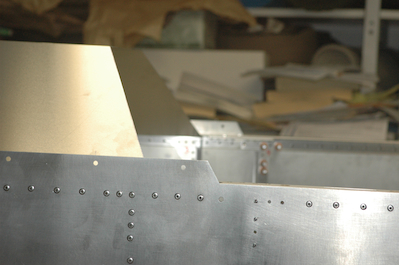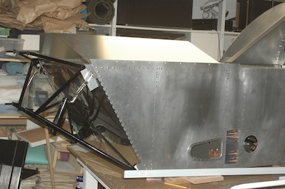 It was exciting to get the seat in and sit in the cockpit. I also had more visitors that I had get in and fly. The picture below is my younger son and his wife. After all the hoopla it was time to move forward again. Having gotten out the glare shield blank, it was time to cut it down per the plans and fit it with the upper firewall in place. I also test fitted the engine mount again, but it is not quite time to put it on. |