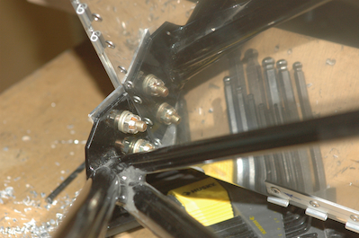 These pictures show the attached engine mount. The screws are supposed to have metal locking nuts installed. I have them but I did not put them on yet. I used castellated nuts for now. I will install the lock nuts just before I mount the engine. The mount will come off at least one more time before I mount the engine and I want to put the metal lock nuts on only once. What’s next? Landing gear! |