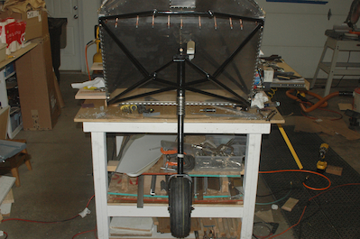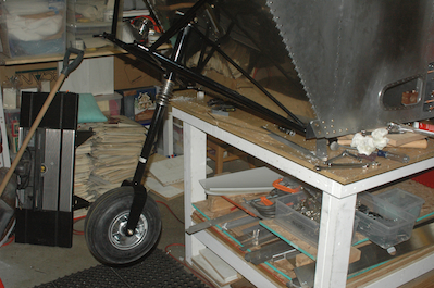 To attach the strut to the engine mount, I had to attach the drive cap. This piece will connect to a rod that will be attached to the rudder pedals. Push the rudder pedals, turn the wheel. It attaches with a long bolt and bushing. The long bolt and bushing will limit how far the strut can rotate. The bolt has to align with the wheel and the drive cap arm has to be perpendicular to the bolt. The top of the cap also has to be flush with top of the strut. That turns out to be slightly tricky but not too hard. With the spring in place, just slipping the strut in place will leave the cap about 3/8” too high. This is on purpose. The specs of the spring indicate that it will compress an inch with over 400 pounds of load. To attach the bolt I needed to compress the spring about 175 pounds worth. I wasn’t sure how I would do it but, with the wheel off, I was able to push down with most of my weight on the engine mount and slip the bolt in. Then I just had to reattach the engine mount. With the engine mount off, I also took advantage of this opportunity to clean up the mounting holes for the engine mount. I had not done this yet, since I knew I was going to take the mount off at least once. |