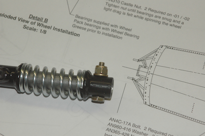 With the nose gear on, I decided now would be a good time to assemble the drive arm that connects the nose gear to the rudder. I had to remove a lot of the powder coat and ream the bushing as shown in the first picture. The pieces are test fitted in the second, and finished up in the third and fourth. I automatically reached for a nylon insert locking nut and put it on, but this piece is forward of the firewall so that is a no no. I replaced it with the correct all metal self-locking nut. I also replaced the two nuts holding the stop plate to the engine mount with these as I used the wrong nuts there too. |