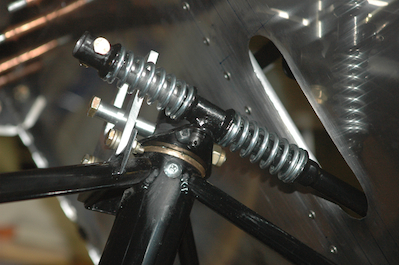 These pictures show the drive arm attached (no pin is securing it yet). The first picture is from the previous post so you can see where it goes. The last picture is from inside the cockpit. It will attach to the right rudder pedal so a push on the right pedal will move the nose gear to the right.