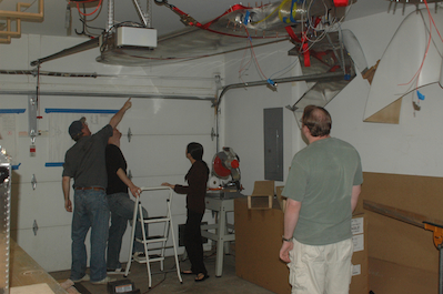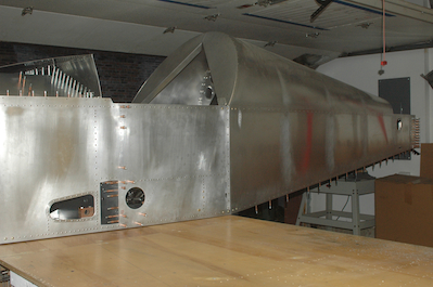 So here is the start of the next step, getting ready for wing drilling. I am just slightly out of order as I will finish a few minor steps before I drill the wings, but with the boys over today, I took the opportunity to have them help me get the wings down and reposition the fuselage. It was a carefully choreographed move. First the right wing came down with the garage door closed. It can’t come down with the garage door opened. With the wing down and held by the boys, I opened the garage and we set it down outside (you can just see it in the third photo). Second, we repositioned the fuselage to the far end of the table and turned it 90°. |