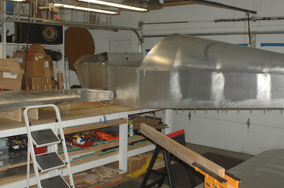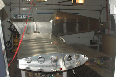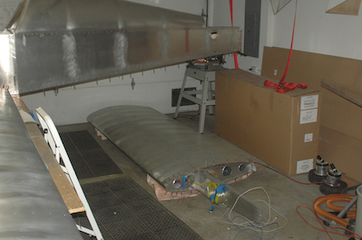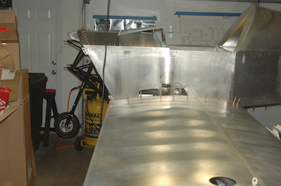 Third, we got down the left wing and put it on the table. Last we brought the right wing back inside the garage. These pictures show the final layout of the garage for now. Note that the wing on the table is upside down. When I made my wing cradles, I made a set for the top of the wing and the bottom of the wing. One wing has to be upside down when both wings are in cradles. I will turn the left wing over and place it on some soft padded material when it comes time to insert the wings. My dad is coming down Wednesday to help with the drilling. I plan on doing the remaining work I have on Monday and on Tuesday inserting the wings into a starting position for leveling etc. |