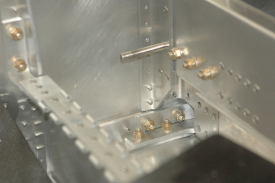 These pictures show the rear spar carry through assembly going back into the fuselage and getting permanently attached. The last two pictures show the left and right sides all complete. If you look closely you can see that the angle is attached with only three rivets at this point. The rest can’t be installed until the wing is taken off. |