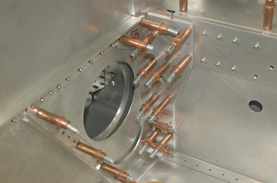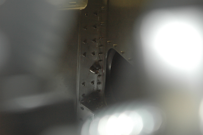 These pictures show the two bolts that attach the wings to each other and the fuselage. These are very important and difficult holes to drill but they are now done. The top two pictures show the aft side and the bottom two pictures show the bolt coming through the forward side. The wings have to come off now pieces clecoed together come out for a final cleaning. Then they go back in to be riveted in place. I will be putting the wings back on then to finish out several steps over the next few weeks. Then they will come off and go back into storage while the fuselage is finished up. |