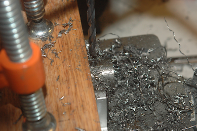 To get to bolting on the wings, I had to go through a couple more construction steps. First up, drill some titanium. I can’t finish the fuselage until the landing gear legs are fitted to the landing gear weldments. That involves drilling a bolt hole through the weldment and the titanium landing gear leg. As I wrote in another post, I had already located and drilled the starting hole through the weldments. I then fitted the rod into the weldment and marked the whole location. Then I put the rod in my hole centering jig and clamped it down. Working at low speed and peck drilling with plenty of cutting fluid I got very nice holes in both rods. These two pictures show the weldments with the fitted rods. To get the bolt in, I drilled the back side hole from the front hole going through the hole in the fitted titanium rod. I will do the lower part of the landing gear installation later. |