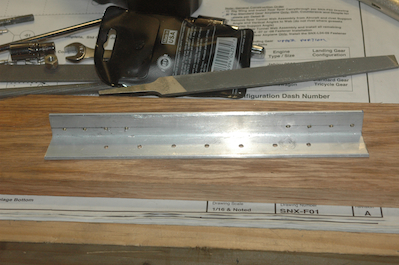 These four pictures show the area being worked with the angle removed, then the new angle. There is a blue reference line that shows the position of the old angles position. I mounted the new angle about 1/8” aft of this line. There was enough play in the channel it attached to that allowed this. The last two pictures show it being installed and riveted in place. |