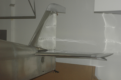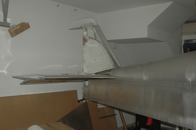 With the horizontal elevator bolted in place I could install the vertical stabilizer for the first time. It is just sitting in place here, but the tail really looks like a tail for the first time.