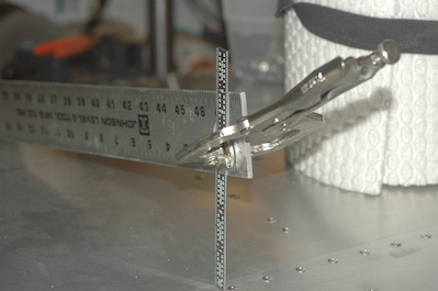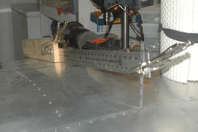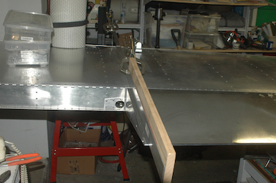 These pictures show the contraption I’m using to set the flap position. The flap is supposed to lie on the tangent to a line from the edge of the wing to a point 2 29/32” above the rear of the leading edge skin. The flap handle is in the 0° detent while making these measurements. Both flaps are on and set up. The ailerons and elevator are next up. |