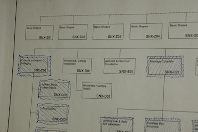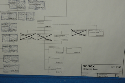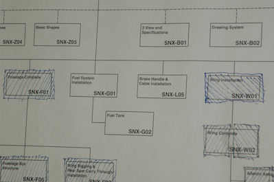 After the big push to get the wings on and then rig the controls I seem to have taken an unintended break. I have worked some but mostly I have been thinking about working and admiring my work rather than actually doing anything. I did mark off all the plan pages that I have completed, and this page shows what’s left – windshield and canopy, avionics and electrical, fuel system, brakes and finally engine and cowling. |