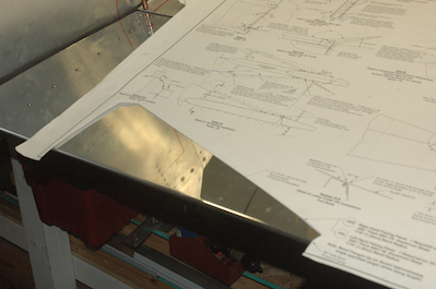 Next up, unfinished tail fairings. So far, whenever the plans called for a piece to be made that was not in the kit and the plans showed a full size template without measurements, I have traced or measured out the piece. This is the first time I cut a plans page to use the drawing itself as a template. Oh well, at the workshop, Jeremy said to just cut up the plans and drill into the table. Then he said, when you are done, the table should just be sawdust and the plans scrap! I found drilling into the table to be the right call. I don’t like cutting up the plans. In the last picture the piece has just been rough cut and I am just starting to fit it into position. Behind it is another small fairing. There are two more small fairings that also have to be made for the rudder cables and flaps. |
