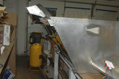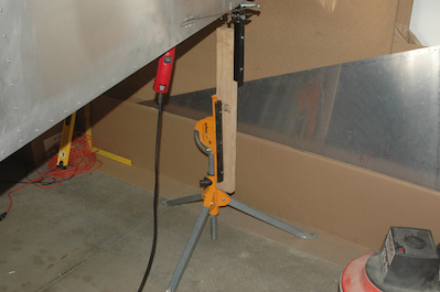To do a lot of the work I had lined up, I needed to build a tail stand. I have had the engine mount and nose gear in place with 50 pounds of ballast. That has kept it sitting nicely on the table. Since I need to take the mount off and leave it off for awhile, the stand was needed. The metal bracket is from an old BBQ grill that I have cannibalized over the years for various things. |