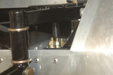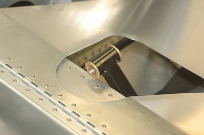 More interferences. After I rigged the controls I found that the aileron stops were preventing full travel with the stick when it was full forward. The stop was hitting a bolt on the landing gear mains. This problem won’t happen on most Sonex’s because they aren’t trikes. This only happens on a tri gear Sonex. There was also a tiny amount of play in the stick at the aileron bushings when pulling or pushing on the stick. Since I had to take the unit apart to trim the stop and because I had four extra bushings, I reamed four new ones and the motion is perfect and no more interference with the stops. Both of the counterbalance arms on the ailerons also had some slight interference at the limits of travel. I had to lengthen the holes where they penetrate the rear spar just a smidge. |