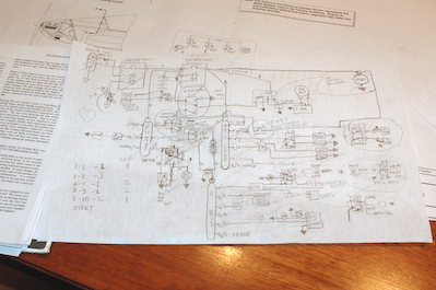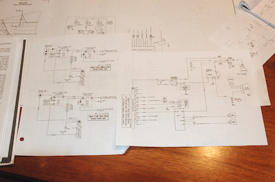 For the last couple of weeks now I have been working on the wiring plan. Apart from down time from a cold, I have gotten quite a bit done. It just doesn’t show well with pictures. Last weekend I finished the preliminary plan for the wiring. These first two pictures show the minimal and nice wiring plan supplied by Sonex and some plans from the AeroElectric book that is the electronic bible for so many homebuilt aircraft. Why not just use the Sonex plans? Because this is the area that really fascinates me, avionics. If I do any mods to the plane in the future, this is the area I will explore, different electronic instrumentation, GPS’s etc. This is the area I can work my own design ideas into the plane and have fun and learn at the same time. So this is where this Sonex becomes my Sonex. These next two pictures show how I started. A list on one side of everything that has to be wired up on the plane, and a list on the other side of all the switches needed to turn stuff on and off. In the middle was the very first attempt to put all of these items on paper in the format from the AeroElectric. These next two pictures show first, another rough but mostly final layout and second, a BOM for all the parts called out in the drawing. Also included is first draft of a panel and a fuse block mount. |