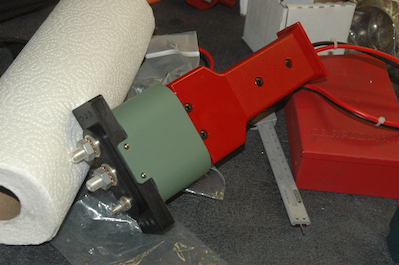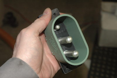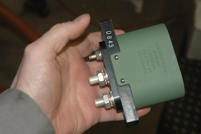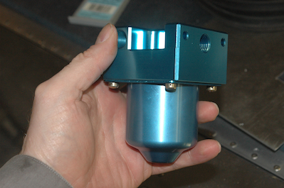 And how will that power get to the battery you ask? Through this item. I must admit to some embarrassment over this item. I recently read on the Sonex Yahoo boards of a nice simple homemade ground power attachment that didn’t seem too hard to make, but no, I had this in mind so this is what I was going to get. I must confess that I had never seen the Cessna style ground receptacle close up or held one in my hand. Let’s just say that I think I could run a 100amp service to a house through this thing and its weight will have an impact on CG!!! It is going in to the plane because I can’t wait for all the conversations this piece will start. The last item is the gascolator and is getting fitted to the firewall now as well. |