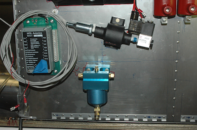 It is surprising how long it takes me to decide on drilling holes in the firewall. I told Kathy that today, all I did was drill two holes! And it really feels like that was it even though it was a pretty good day. I did finalize the position for the gascolator and drilled the two mounting holes and the hole for the fuel line. The second picture shows the push drain on a 45° elbow. It will sit just above the bottom of the cowl with an access hole to drain the fuel. The first picture below shows the pump and valve for the smoke system. These pieces need to go on the firewall as well. The last picture shows these items in position. The pump and valve are on an angle which is fine for them. There are all kinds of reasons why I couldn’t go lower and level. All parts seems to want to interfere with each other. I had to take on and pull off the engine mount several times before finalizing all these positions. I’m still worried about the exhaust pipes and the oil separator. Won’t know until I mount the engine if the clearance is enough. |