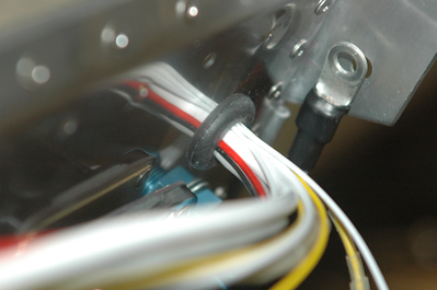 Before you know it, all the items have been remounted and most will not need to come off again. With that all done I remounted the wiring I had already done and then added a lot more. At this point, I will wire up all the items on the firewall that attach to each other or need a run back to the panel. This will mean that the wire bundle coming through the firewall will be final size. In the two pictures below, you can see the bundle at the grommet is almost full. It only needs the two magneto wires and a couple of spare runs. The last picture shows some of the runs that go back to the panel. That will be next after the firewall is wired up. |