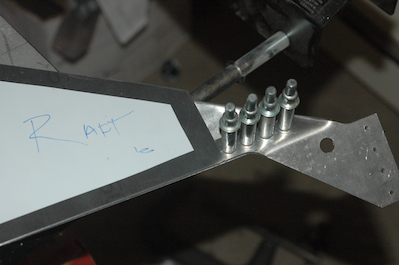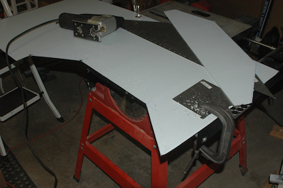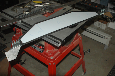 Like a lot of builders, I would like to remove the panel in future – to add even more weight of course. I have seen various panel enhancements and what I decided to do was make a panel that would attach to the fitted panel with nutplates. The original panel would be turned into a frame. The transponder will hang below the panel on the right side and a small subpanel will be fitted under the center of the panel. It will hold the eyeball vents and headphone jacks. These pictures show the initial cut of an .063 panel. |