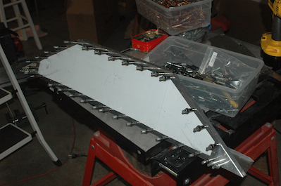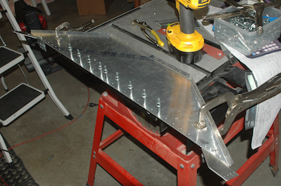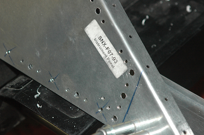 After fitting the new panel to the old one and drilling the main screw holes, I drilled the old panel for the nutplates.