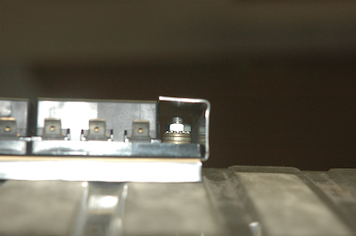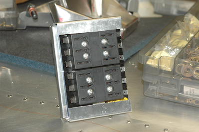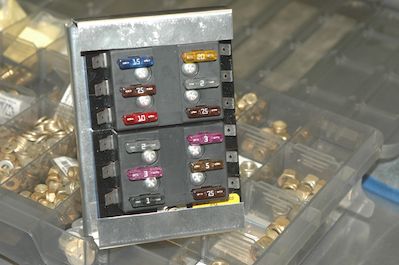 The first picture shows the first fitting in the intended location. The next two show the blocks mounted and a wild assortment of fuses installed. The last picture shows the first modification to prevent shorts. The power terminal has been cut to final size.