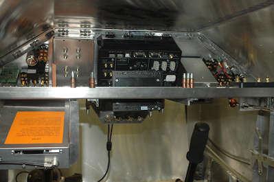 The previous pictures also showed the glare shield in position. You can see it in the first two pictures. Picture one also shows a problem. I wrote before that I thought the Enigma clearance of the support I made would increase when I attached the glare shield. Wrong! Apparently, without the glare shield, the frame and channel it attaches to, had enough spring to hold the Enigma at a higher angle than when the panel is attached to the glare shield. I had a fix in mind which worked, I will post pictures later as I neglected to take any. The second picture shows the interior space under the glare shield and behind the panel. These two pictures are of a support channel I made to hold the GPS unit. |