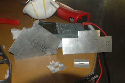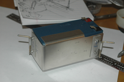 There are four items I need to mount that attach to the Enigma, a BU battery, the electronic compass, the attitude heading and reference gyro package, and the IOX (remounting in a different location – which is the third relocation for this item). The first picture below shows the designs for the battery and AHARS units. These will go under the seat. The last two pictures show the finished battery mount prior to install. |