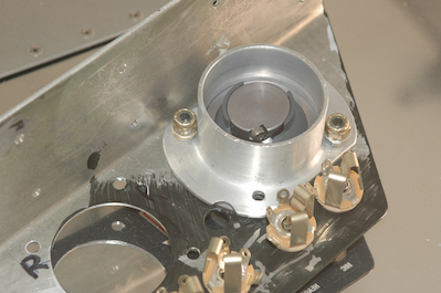 In the last post I mentioned that my epoxied on flanges did not work out. I found these aluminum flanges and after a few, quick mods they were mounted in place. A test fit of the scat tubing worked nicely.