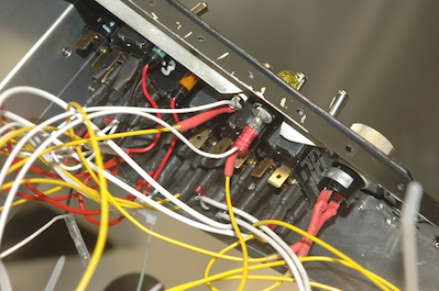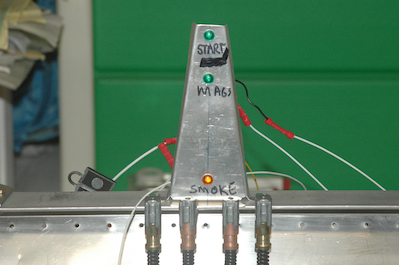 Here is an interesting device. Since the engine isn’t hung, the wires to the starter, mags and some other firewall forward devices are just loops waiting to be connected. I reused this scrap piece seen in another post by installing some LEDs and hooking them up to the looped wires. Push the starter, the start light goes on. The mag light actually tests both mag wires. Normally it is an open or closed grounding circuit. By running power through it, when it lights up, the mags are grounded and off. These pictures show the voltage monitoring and alarm device and the hooked up push to test switch and signal light. This however is my first wiring mistake. I got this device well over a year ago and I’m sure I looked at the drawing to see how to hook it up. I didn’t however look at it again as I was laying out my drawings. I only looked at the device and assumed it was obvious how it worked – Nope. It turns out it didn’t work and when I investigated it I found I had hooked it up wrong. I didn’t let any smoke out of the wires but there must be some in the box because I killed it. |