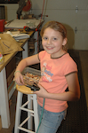 The last post ended with the polished rudder on the vertical stabilizer with the skin attached with the silver cleco's. However, all those holes had to be up-drilled to the final size with the silver cleco's exchanged for bronze. Then the whole thing was taken apart, deburred and cleaned. I was all ready to reassemble the day before Thanksgiving. As it turns out, I got help from my niece. She fed me cleco's and I put them in. She did get to try a few. |