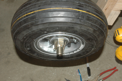 The dust shield, axle nut and cotter pin have been installed in the first two pictures and the wheel pants are on in the last two pictures. Everything looks and feels pretty good. That pretty good is with one caveat. Even though I bought the machined brake drums, I found that the wheel assembly does not turn perfectly true. I believe they are as as good as can be with the cast wheels but they do rub against the brake pads a small amount during a small portion of their rotation. I believe the machined drums are a nicer product but with the cast wheels, I believe a perfectly true rotation will be hard to come by. I worked hard at it but could not achieve it. |