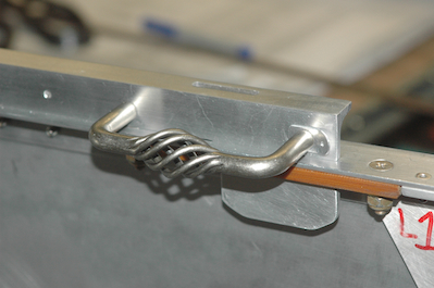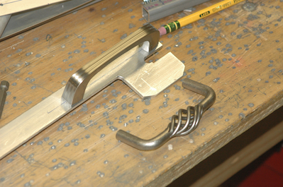 The piece has all the finishing machining done in the first two pictures, including two notches in the upper surface. These were what I was most worried about messing up, but they came out very nice. Pictures three and four show a couple of drawer pulls that attach to the locking piece. I had already drilled the holes three inches apart but the simple drawer pull called out in the plans and what I wanted only came 3.5” wide. They had a plastic one but the plans call for a metal one. I went with the second one because the first one interferes with the little spring mounting tab shown in the fourth picture. |