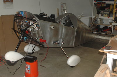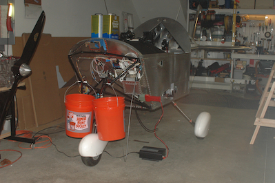 OK, here comes the best part. In picture one the plane is still on the saw horses and in picture two it is not!!! The nose wheel is in the air because I did not add any counter weight yet but that has been added by picture four.