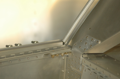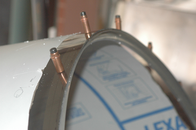 The first picture shows how the canopy tubes connect. There are four welded pieces in the kit that are inserted at each corner and link the tubes together. In the second picture I have inserted a trim piece between the bow and the windscreen. It will stick out beyond the windscreen and go under the canopy. If you look close in this picture you can see a trim line for the aft edge of the windscreen. I then took the windscreen off for final trimming and had access again to the glare shield and fuselage side skins. I made some final adjustments to the bend lines and also installed Velcro to both of the GPS antennas to secure them to the glare shield. |
