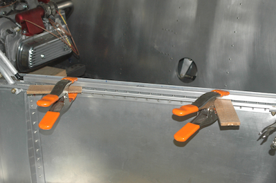 Through out the process I wrestled with the build order. Some people have talked about fitting the bows after the canopy was cut and the Sonex video shows a wooden template to hang the aft edge of the canopy on. I went ahead and fitted the bows and used the aft bow to support the trimming process. I was unsure of when to do the cross piece and decided to do it as well. I had a very minor change in the bow that I could still correct so it was a fine thing to do. That is shown in the bottom pictures. |
