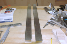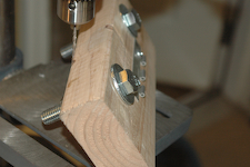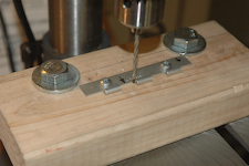 And what would it be like without some troubles. As I posted earlier, I made two pieces too short. These are the replacement parts. I also double checked the plans and I will not need anymore of this channel beyond the one piece I still have. So I am golden. Here are two shots of my hinge drilling jig. It bolts to the drill press. Just put it on the press, set the drill bit in the hole for alignment, bolt it down and start drilling. |