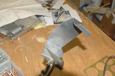 As I said last time, it was time to move on to the baffles. When I built the engine I formed some of the baffle pieces. I only did a few because some required bending to fit. I loosely fit and clamped the first three pieces shown in the first picture and then started to bend and clamp up the rest.