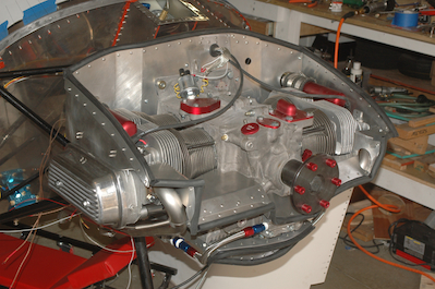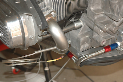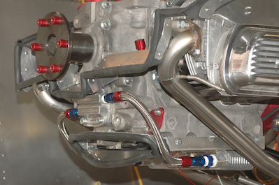 With the hoses on I permanently installed the exhaust pipes with their gaskets and then the forward piece of the baffles. In the second picture you can see a small hole in the rear baffle. This hole is for the last piece to install in this area, the 5/8” oil breather tube. After that there is nothing in that upper area to do. I have already moved on to installing the EGT and CHT wires into the RDAC but that is for the next log. |