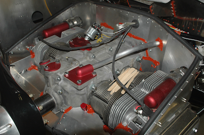 These first two pictures show the tracking of the prop. It is within the specs allowed which is 1/8” of each other. It is a fat 1/16” The third picture shows the application of RTV to seal up gaps in the baffles. The last picture shows the carb safety wired in place. It is held on by two clamps around a hose. It is very secure but the safety wire is called for just in case it started to slip. |