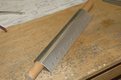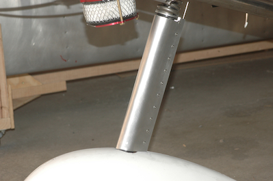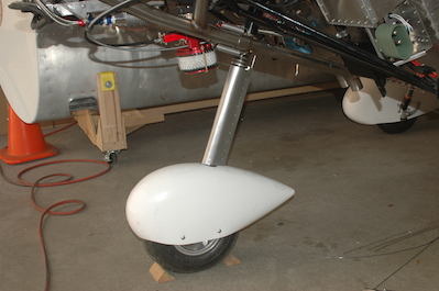Attach the hinges and fold it over and it is ready to be fitted. I had a nice wooden doll the same diameter as the gear leg that came in handy. The last two pictures show it installed.