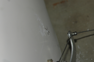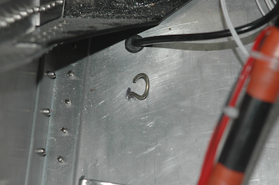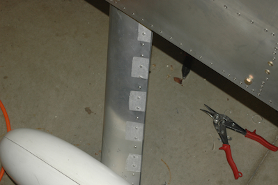 I’ve seem discussion on the Sonex yahoo group that people have had a hard time fitting the hinge pin in from the fuselage through the fairing and into the wheel pant. Mostly that has been in regards to the tail dragger, and it does look pretty difficult as the hole is way under the tank. For the trike, access is much easier and I had no problems once the fairing was fitted. To do that was a little hard. Using a good heavy duty tape to hold the fairing closed and in place while I measured what to trim was a big help. The last two pictures show the hole drilled in the wheel pant and the pin installed. |