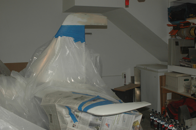 After literally taking about a week off to fret about my fiberglass issues, I decided not to do all the nice clean up items I had on the cowl and other items. I did have to redo a hole that Dave Waterman had fixed for me but that I then managed to drill wrong a second time. I used some glass and some flox for that structural repair. I also filled the holes in the cowl used to fit the cowl in position but skipped a bunch of other little touchups and moved on to paint prep. The third picture shows the cowl all sanded and ready for masking the hinges and then painting. The last picture shows the tips all masked off and also ready to go. |
