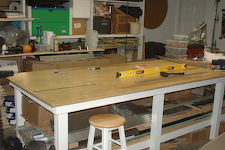 They are done, but before I started to assemble them, I did a few more tweaks to my shop and tool bag. Here is the new offset rivet tool. Another Sonex builder posted a picture of his improvement to the basic offset tool – put the angle in the tool. It works much nicer. I wanted it for the spars because they have a lot of rivets that the gun can’t get at directly. My table has been great but when I built it I thought the unevenness of the 2x4’s and the table top comforming to their shape would be acceptable. However, with the next pieces I don’t want them following the shape of the table with any dips etc. The dips in the center and slight waviness in the edges was too much I decided. So I shimmed it up real nice. It is much nicer and I won’t worry about the unevenness anymore – even though it probably was no problem. |