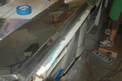 These pictures show a little more detail of how I held the control surfaces in place for polishing. Pictures one and two show the slot I cut into the table for the tab the control rod attaches to and how the counterweight hangs off the end of the table.