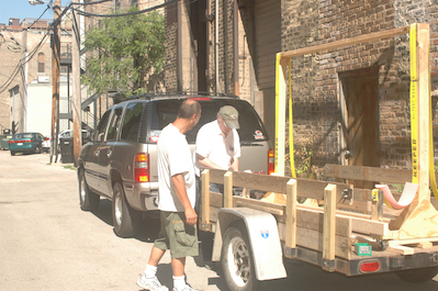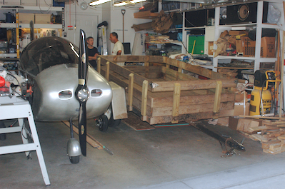 Early Saturday, my brother Ken was also able to come down as well as my mom and dad. Jeff’s trailer spent the night in the spot occupied by my table for almost the last four years. We then set out to load the wings onto Jeff trailer. We first moved the wings to my old wing forms that I made to hold the wings on the table. Then me modified the wing stand to better secure the wings to it and it to the trailer. |