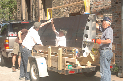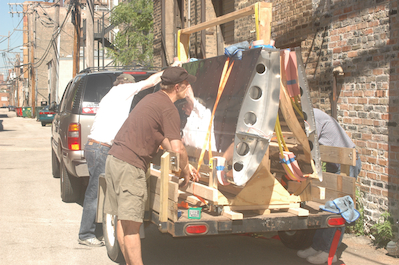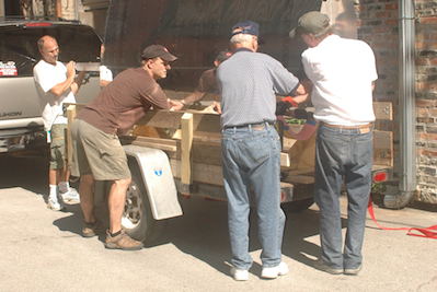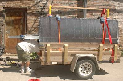 With the wing stand secure on the trailer, we moved the wings back to the stand and strapped them down. We also strapped down the upper cross member of the stand to the trailer. It was rock solid. My brother Ken is finishing up in the last photo and checking all of the work.