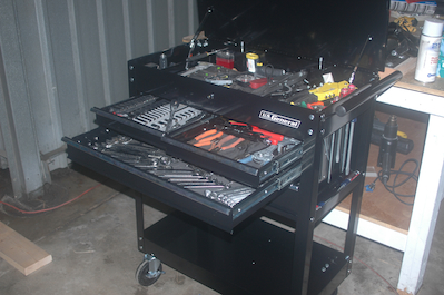 I had more tricks up my sleeve. The deflector I repositioned was also extended about an inch, but no changes were noted in engine temps. The first two pictures below show two different mods to the baffles that I have seen others perform. The front most cylinder on each side, is quite a bit cooler than the cylinder behind it. The idea is to close down some of the airflow over the front cylinders to force more air to go over the back ones. Fine in theory but didn’t seem to do anything for me. Mixed in with all of these I also went back to the drawing board on the secondary ignition timing. It was clear that when the secondary ignition was off the CHT’s would drop and the EGT’s would rise. A sure sign the secondary was advanced. I don’t have pictures, but this time I made scratch mark on the magnet 90° to starboard and made some corresponding marks on the rear accessory plate. It turned out to be much easier to repeatable move the magnet precisely and I was able to adjust the secondary. I actually ended up retarding the spark quite a bit. The last two pictures are of a harbor freight rolling tool cabinet that was 60% off the regular price. My Mom and Dad sent me some birthday cash and I went right out and bought it. I kicked in less than $50. |