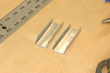 This picture shows a kit supplied piece of .025” 1.5” angle that I have made over a half a dozen parts from so far. Most of those parts have been small clips shown in the other posts. I used a little over a foot of this material to make the two >3” clips shown below. They are part of the counterweight assembly. |