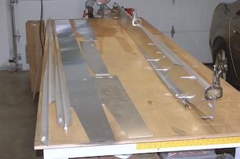 I also researched and ordered some electrical components, finished shimming the final four feet of the table and then… …Voila, started getting out the kit parts for making wing spars. These are all the pieces that come machined and pilot drilled for both main spars. I still have to make a bunch of pieces that attach, but as you can see, I clecoed and clamped the left main spar together and it looks really cool. However, it will be awhile before this really gets assembled. Besides making the other parts, I have a lot of cleanup to do on the spar caps to get them ready. I will also be making the aft spars first. |
