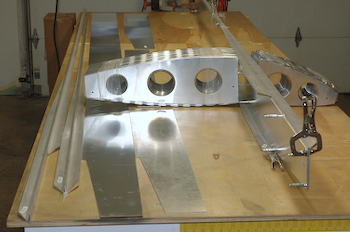 All the predrilled stuff fits perfectly. The first picture here shows the layers of material that stack up to form what is a nice thick beam. These will sit back to back and form an I-beam in the fuselage almost 3/4” thick. I also took the time to measure the spars and verify that when they are attached to each other the wing really will fit in the garage. The second picture shows the bottom of the spar. Just left of the clamp is a notch. The other spar will sit just behind this one and the two notches will meet. It is 10’ 11” from the tip of the spar (and the wing) to the notch. That makes the wing span 21’ 10”. That will leave me five inches of extra space! Plenty of room. Another picture that shows the layering in the precut hole and the perfect fit of all the pieces. The last picture gives and idea of how the ribs will attach. |
